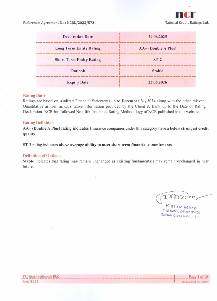 2024 2023 2022 2021 2020 2019 | AA+ AA+ AA AA- A+ A | Stable Stable Stable Stable Stable Stable | 25,June 2024 22,June 2023 03, October 2022 26, December 2021 28, December 2020 31, December 2019 | 24,June 2025 21,June 2024 02, October 2023 26, December 2022 28, December 2021 30, December 2020 |